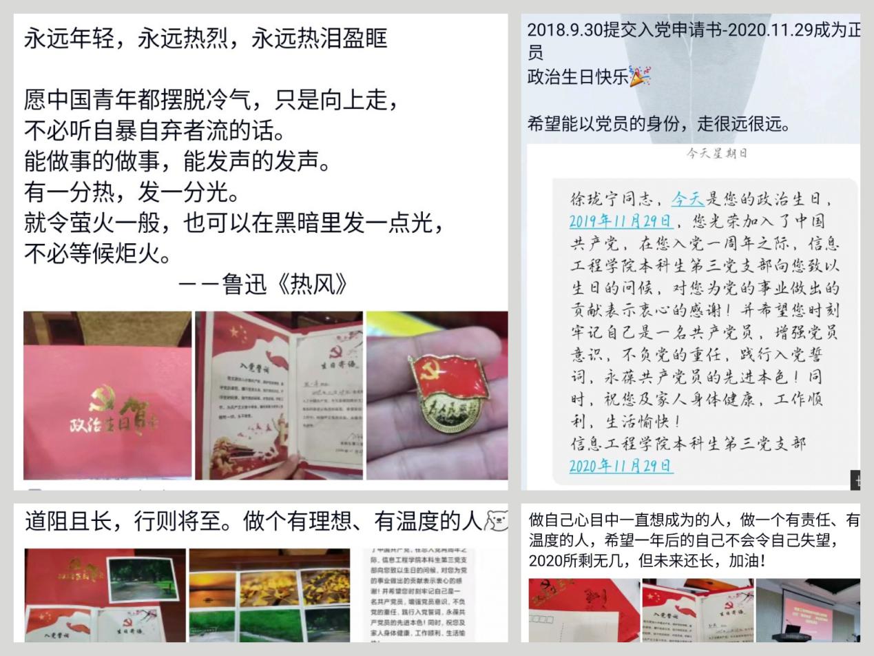 “在政治生日当天,收到来自党组织的短信祝福和生日贺卡,真是太暖心了,太意外了,感谢组织的关爱和栽培。”11月29日,欧美av 本科生第三党支部通过开展“赠送一张生日贺卡,发送一条祝福短信,重温一遍入党誓词,开展一次谈心谈话”活动,为支部21名党员同志集体过了“政治生日”,引导每一位学生党员追忆初心、回归初心、坚守初心,继续砥砺前行。