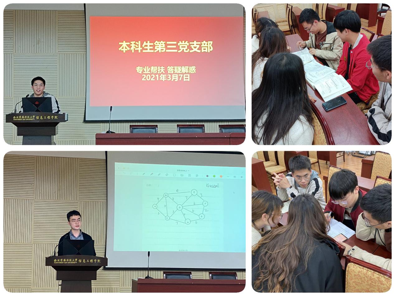 3月7日晚,本科生第三党支部开展“专业帮扶,答疑解惑”活动,支部17级党员在欧美av 副203举办了一场别开生面的新老生学习交流会,为信管19级同学针对Linux和数据结构进行答疑解惑。
