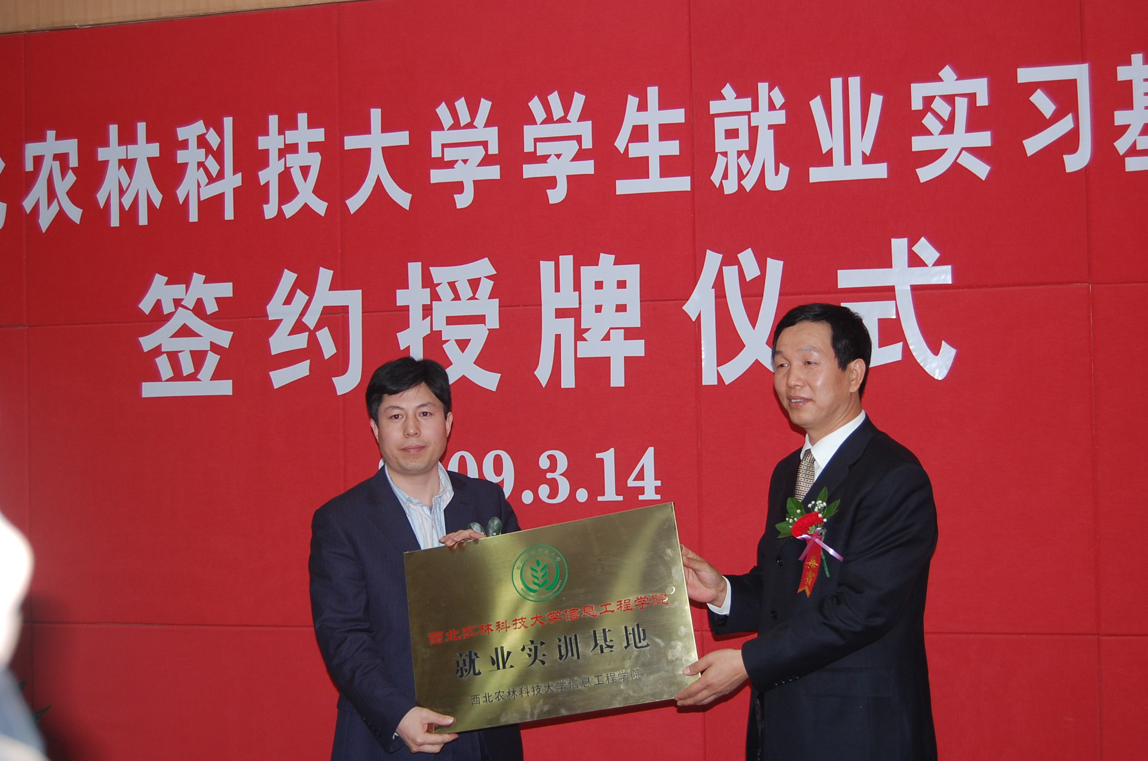 与达内科技西安中心总经理陈相锋先生在杨凌国际会展中心签订了就业实习基地共建协议,校党委副书记徐养福出席并给用人单位授牌。这是我院继北京神州数码融信有限公司之后签订的第二个就业实习基地。
