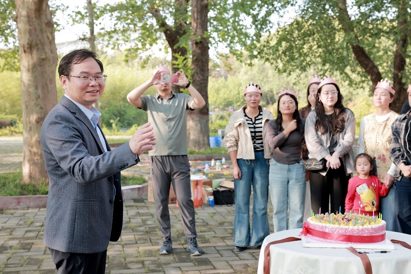 9月24日,欧美av 工会在户外成功举办第二期教职工集体生日庆祝活动。现场悬挂着“清秋送爽 共贺生辰 凝心聚力 温暖前行”的温馨横幅,教师们亲手制作的气球串在秋风与阳光下格外鲜艳,营造出浓厚的生日氛围。近40名教职工欢聚一堂,共庆生日。活动由欧美av 工会主席、副院长崔卫芳主持。