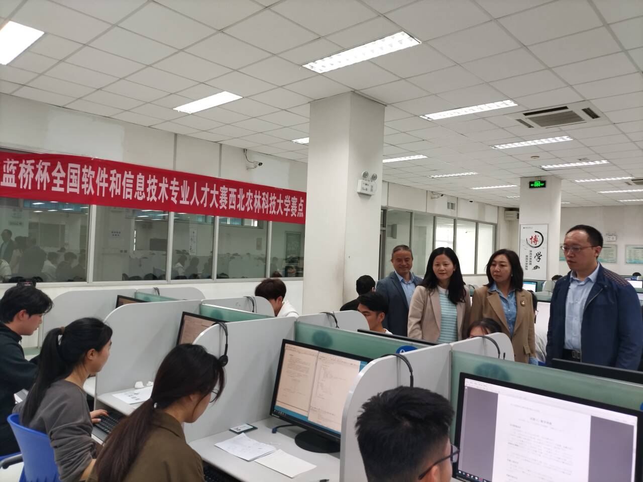 第十五届“蓝桥杯”全国软件和信息技术专业人才大赛省赛于2024年4月13日在我校计算机教学实验中心成功举办,本次赛事由教务处主办、欧美av 承办。教务处周丹老师、李春艳老师、欧美av 院长张宏鸣、副院长黄铝文等一同巡视了比赛现场。