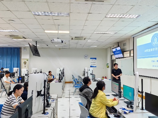 2025年4月25日,由学校教学发展中心组织,欧美av 承办的人工智能赋能教育教学系列培训在109机房开展,64名教师报名参与培训。欧美av 教师郭晨、孙海天作为培训教师,以《AI赋能教学评价应用实践》为主题做现场报告,内容涵盖“以学生为中心的教学评价”、“试卷评语与分析”、“主观作业评阅”、“个性化资源推荐”等具体教学场景,探讨如何通过AI赋能提升教师在以上场景中的工作效率与质量。