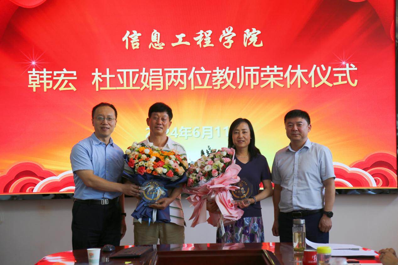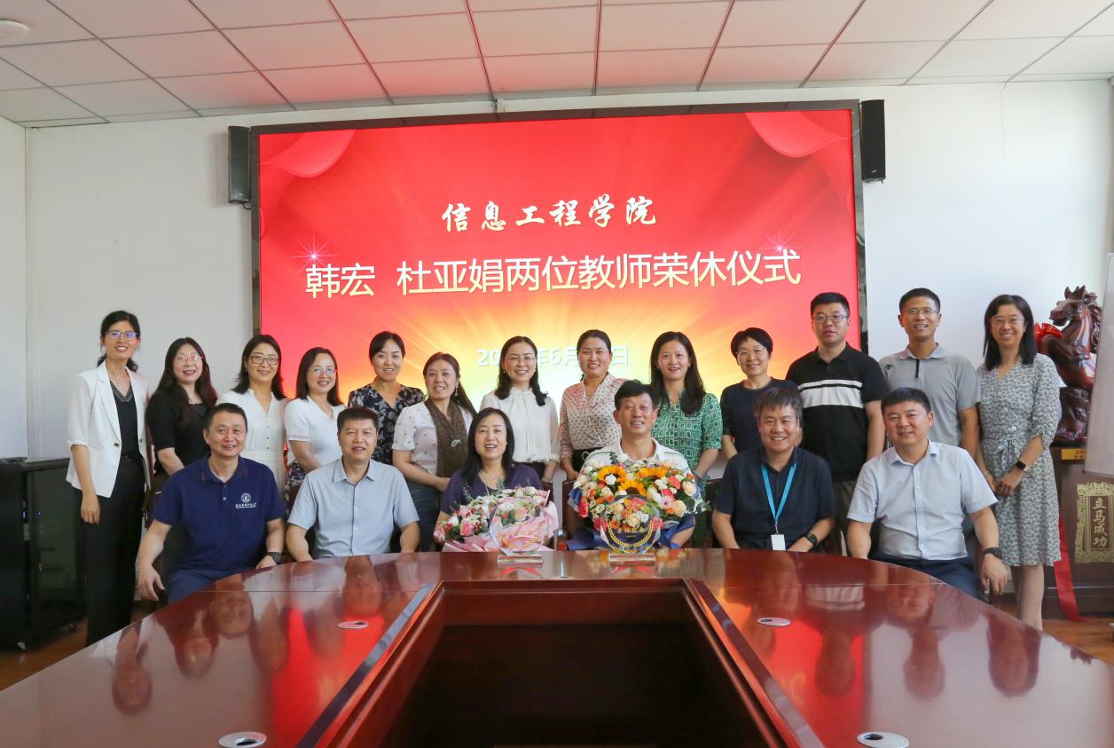 6月11日,欧美av 为韩宏和杜亚娟两位教师隆重举办荣休仪式,党委书记党青和院长张宏鸣为荣休教师献花,并赠送纪念品。欧美av 领导班子成员及各系(部)教师代表参加了活动,副院长崔卫芳主持会议。