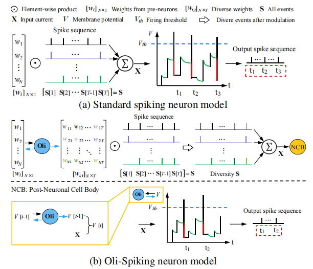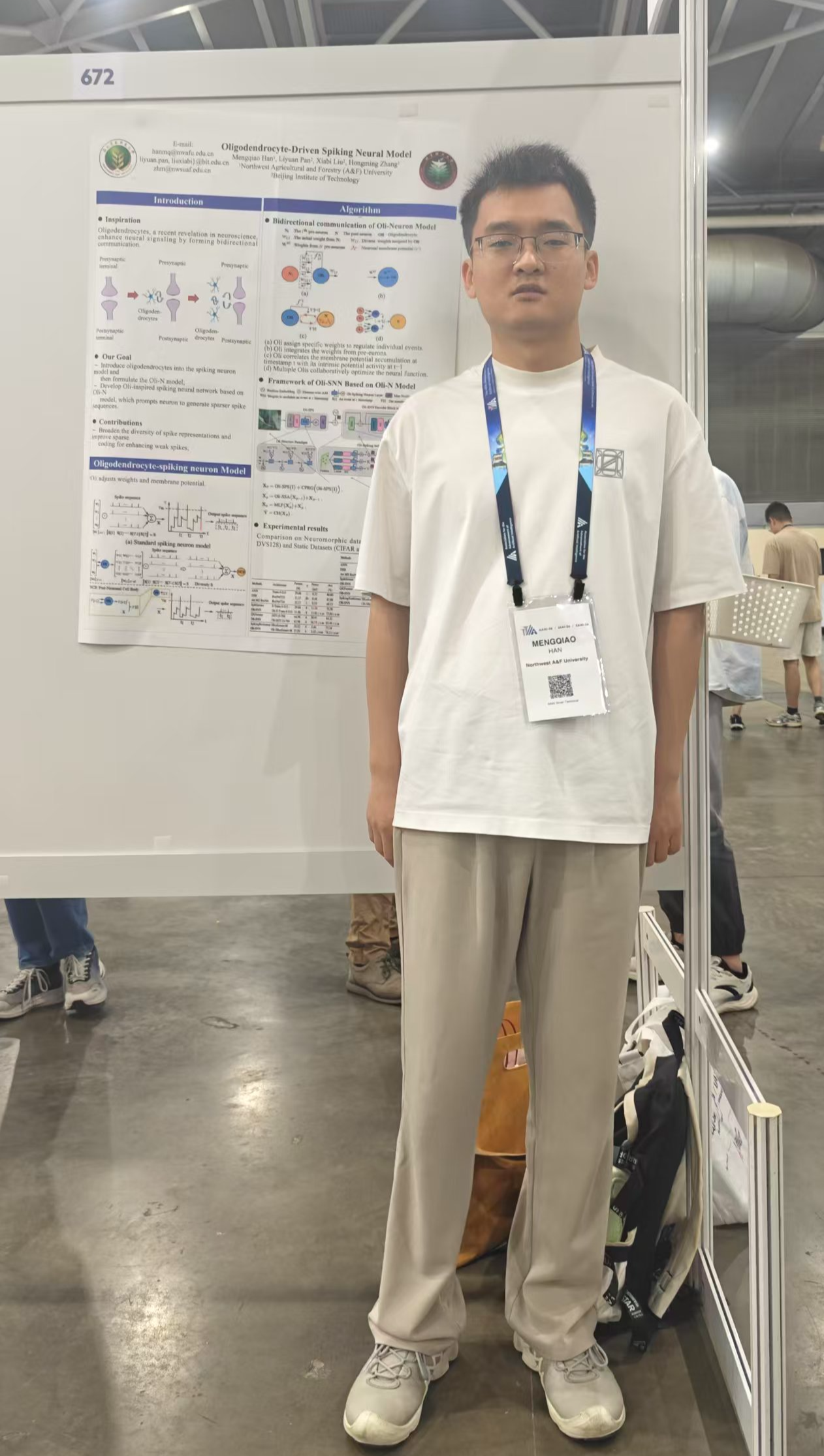 本次展示的研究成果题目为“Oligodendrocyte-Driven Spiking Neural Model”。该研究针对现有脉冲神经元模型过于同质化、对弱脉冲不敏感导致脉冲多样性不足的问题,创新性地提出了少突胶质细胞-脉冲神经元(Oli-N)模型及受其启发的脉冲神经网络(Oli-SNN),该网络通过改进稀疏编码来增强弱脉冲,从而拓宽脉冲表征的多样性并提高神经元的放电精度。实验表明,Oli-SNN在DVS128、CIFAR10-DVS等神经态数据集上实现了0.6%-2.3%的精度提升,并在静态数据集上也取得了显著进展 。该工作得到了国家自然科学基金青年基金及欧美av 博士科研启动经费的资助 。