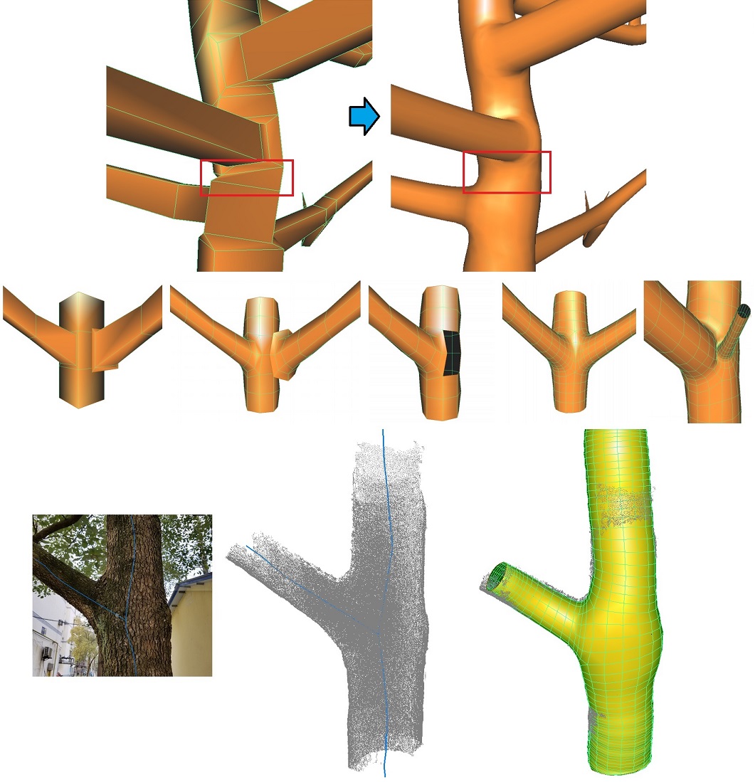 [6] Zhengyu Huang, Zhiyi Zhang, Nan Geng, Long Yang, Dongjian He, Shaojun Hu*. Realistic Modeling of Tree Ramifications from an Optimal Manifold Control Mesh. ICIG2019. Lecture Notes in Computer Science, vol 11902:316-332, 2019. Springer, Cham. (Accepted as Oral paper by ICIG 2019) [Preprint][Link][Slides]