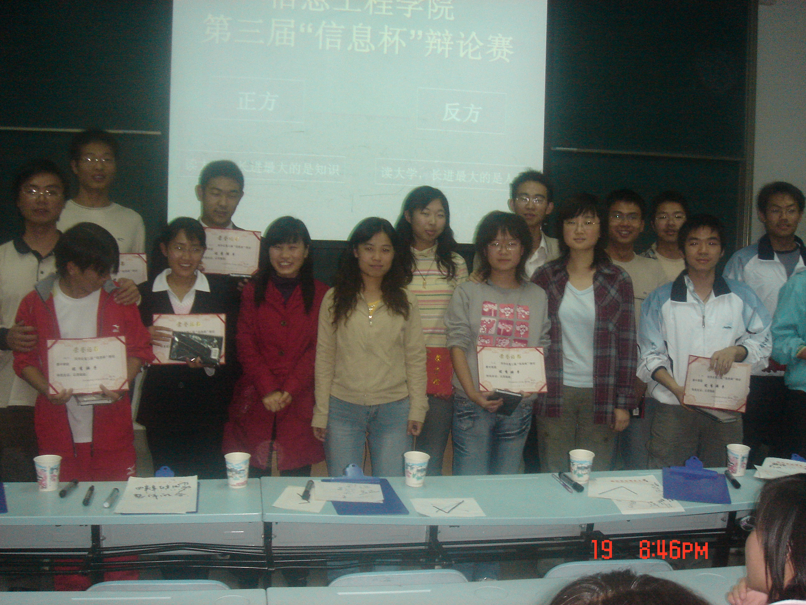第三届“信息杯”辩论赛于2006年10月9日拉开帷幕,经过十五场激烈的角逐,于2006年10月19日圆满结束。