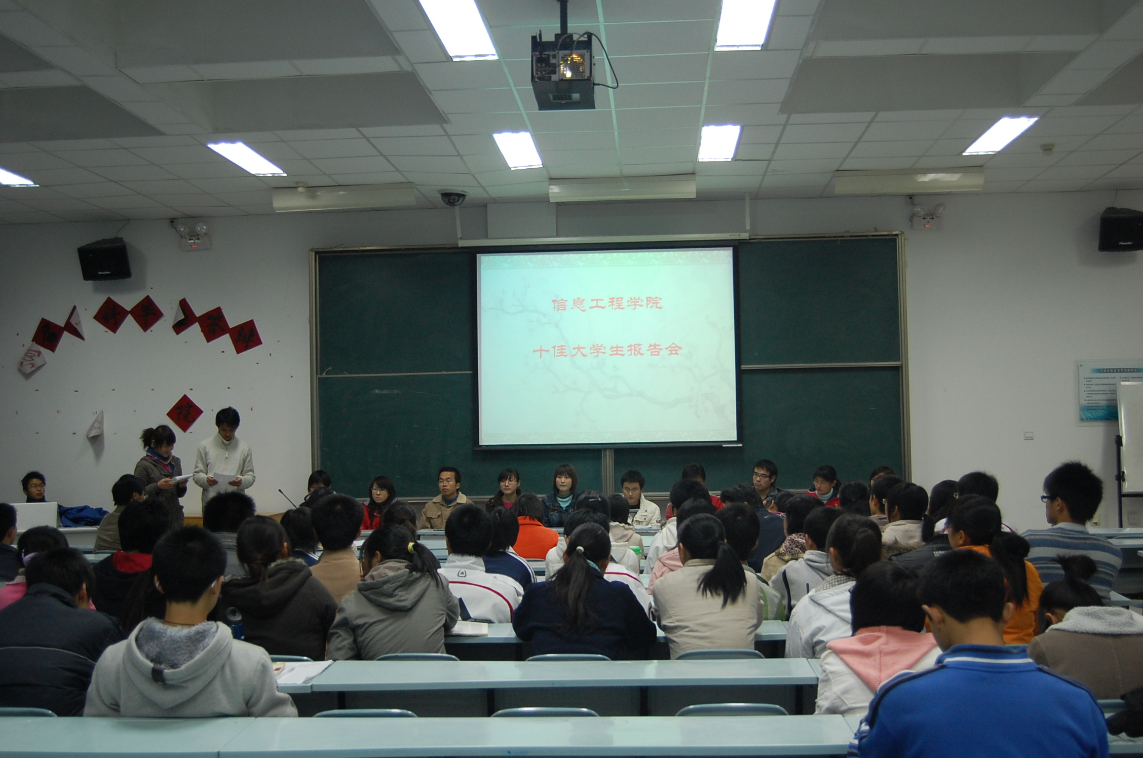 十佳大学生评选情况及报告会的重要意义。接着,十佳大学生就自己学习、生活、工作以及进入大学后的所感所悟进行了经验介绍。他们都提到,专业课、高数和英语对每个学生都极为重要,一定要踏实认真地学,要树立坚定的目标,永不放弃。同时,鼓励新生多参加实践活动,提高自身综合素质,另外,他们还指出要与周围同学建立良好的人际关系,广交朋友。