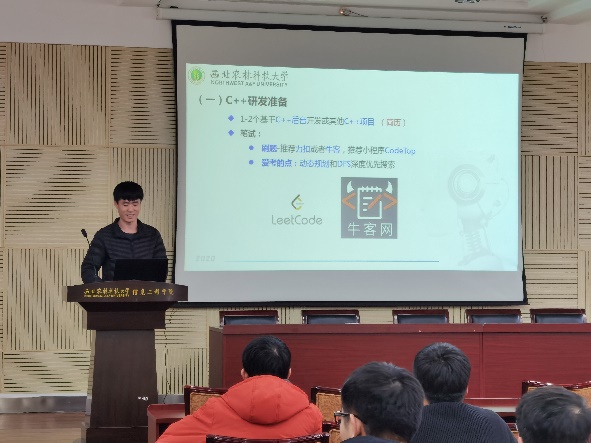 接着在支部的组织下,来自研三的师兄师姐分别将自己在秋招校招的经验和师弟师妹们进行分享。此次分享内容覆盖后台开发、算法研发、前端设计、互娱游戏、企事业单位等多个就业方向,将找工作的准备阶段、笔试面试经验、常见的面试问题、面试技巧、简历制作心得等等经验都为师弟师妹们进行了细致的分享。